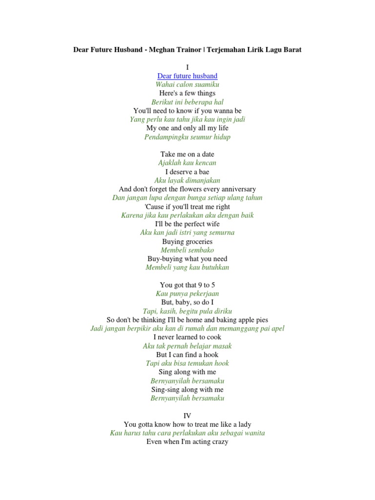 Megan Trainor Dear Future Husband Lirik Terjemahan Youtube